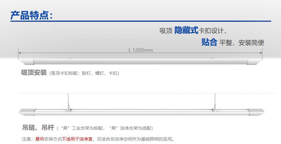 歐普照明昊系列一體化LED工業(yè)支架安裝于一般局部區(qū)域線性照明,薄流線外形,寬發(fā)光面,發(fā)光均勻,不占空間,外觀結(jié)構(gòu)設(shè)計(jì),不易堆積灰塵; 一體化PC管擠出,整燈IP20密封性,PC透光材料,無(wú)顆粒感出光柔和均勻,不易黃化,吸頂 隱藏式卡扣設(shè)計(jì),貼合 平整,安裝簡(jiǎn)便,可用吸頂、懸吊、桿裝。