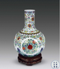 描述:此器1990年3月22日于香港佳士得拍賣,拍品522號(hào)。1995年于臺(tái)北歷史博物館舉辦之《清翫雅集收藏展》中展出。此器形制端莊挺秀,嬌小玲瓏,有別于其它豐肩斂足的梅瓶。紋飾承前朝之風(fēng),清心明快,流暢生動(dòng),甚為珍罕。臺(tái)北故宮博物院藏一件同樣在器肩及足墻環(huán)繪蕉葉紋,腹繪四朵纏枝蓮花,圈足梯級(jí)形內(nèi)凹,雙圈內(nèi)書雙行「大明宣德年制」楷書款。