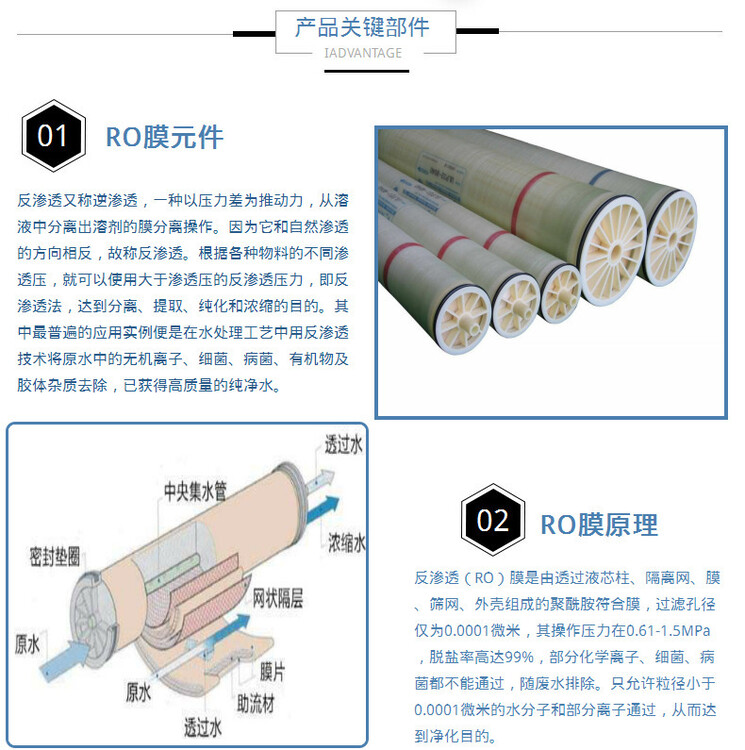 RO膜反滲透純水設(shè)備技術(shù)是90年代才在我國發(fā)展起來的一項(xiàng)現(xiàn)代高新水處理技術(shù)。反滲透就是對水施加一個(gè)大于滲透壓的壓力,使水透過特制的半透膜,從溶液中分離出來。因?yàn)檫@個(gè)過程和滲透現(xiàn)象相反,所以稱為反滲透。RO反滲透純凈水設(shè)備,主要是去除水中的離子、細(xì)菌等,它無需加熱,更沒有相變過程,因此比傳統(tǒng)的方法能耗低。反滲透脫鹽設(shè)備體積小,操作簡單,適用范圍比較廣。