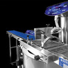 特征:This Selmi chocolate enrobing unit is mounted on a balancing trolley, allowing it to be easily attached to the tempering unit or stored vertically when not in use. Other features include adjustable belt speed, wax paper take-away and an adjustable air blower. Additional 220 volt, single-phase electrical connections are required for this machine.
