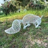松鼠雕塑的金屬絲在陽光下閃爍著冷冽的光芒,每一根鋼絲的彎曲都地勾勒出松鼠靈動的姿態(tài)——它正抱著一顆橡果,尾巴高高翹起,仿佛下一秒就要把橡果吞如口中。藝術(shù)家巧妙地利用不銹鋼絲的可塑性,制作出了很多小動物擺件,有小松鼠,小鳥,小鹿,天鵝,小兔子等等,這些小擺件抽象又具有小動物本真的特性,這就是雕塑的巧妙之處。不遠(yuǎn)處,幾個孩子發(fā)現(xiàn)了這個驚喜,他們興奮地圍過來,嘰嘰喳喳地討論著要不要給"小松鼠"帶點(diǎn)吃的。看著他們天真的笑臉,我突然明白這個擺件更深層的意義——它不僅是對自然的致敬,更是一把打開童心的鑰匙,讓每個路過的人都忍不住停下匆忙的腳步,重新發(fā)現(xiàn)生活中那些細(xì)微的美好。
