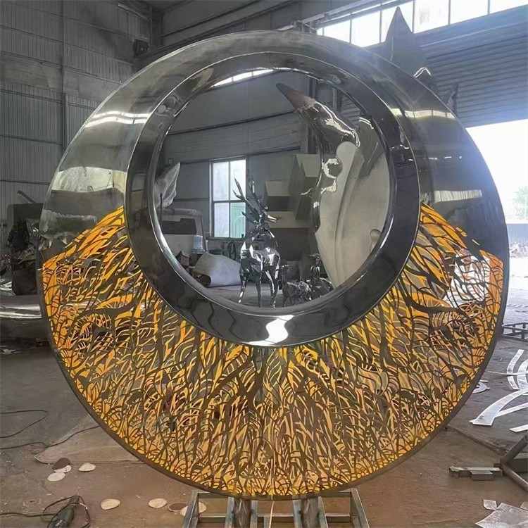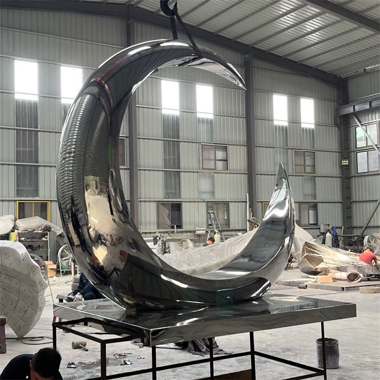 圓環(huán)雕塑是以用簡(jiǎn)約的抽象形態(tài)來表達(dá)出具象雕塑所不具有的視覺感受,在特定的環(huán)境當(dāng)中,通過雕塑的體積大小、形態(tài)特征等來襯托出人們的心理反應(yīng)。這樣的雕塑多以不銹鋼為主,尤其是鏡面效果因?yàn)槠浞垂庑裕谔囟ǖ墓庠喘h(huán)境中會(huì)更容易給人帶來質(zhì)感。一般來說,圓環(huán)雕塑象征圓滿、團(tuán)圓,跟月亮這個(gè)大元素相切合,所以人們也把它們看做是抽象月亮雕塑。