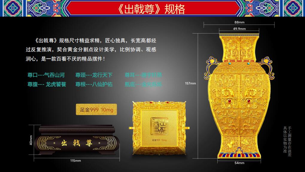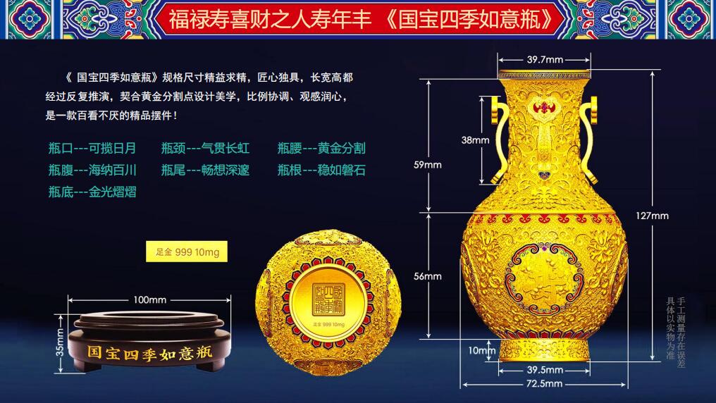 通體金光燦燦、金彩熠熠,外部葫蘆底部含有10mg,盡顯雍容華貴,凸顯源自御用葫蘆的九五氣韻。