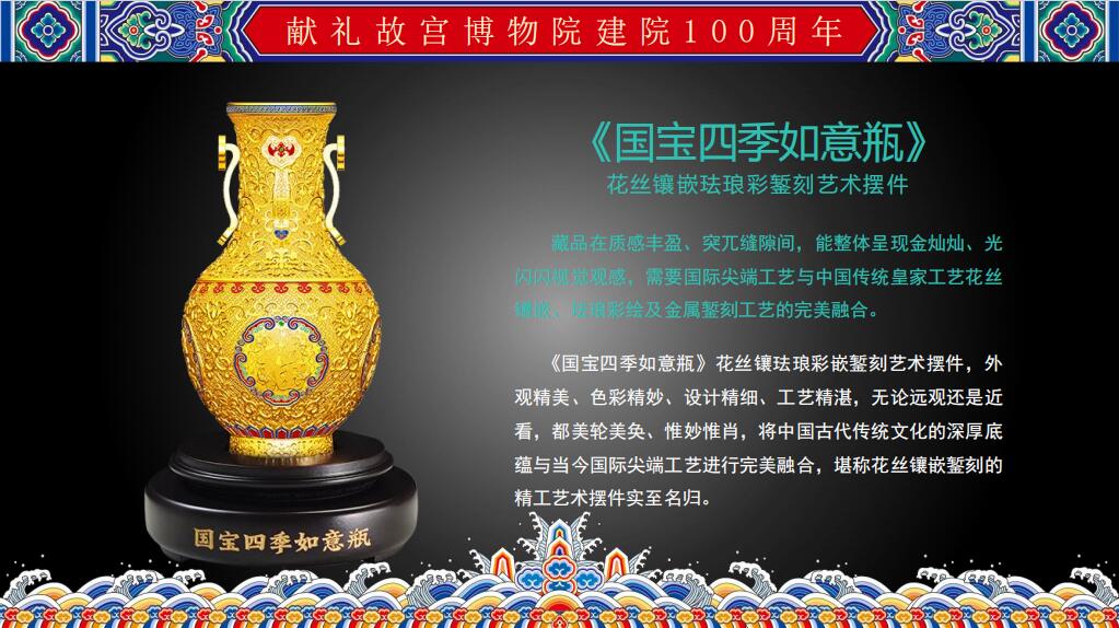 《國(guó)寶四季如意瓶》花絲鑲嵌琺瑯彩戮刻藝術(shù)擺件
