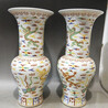 斗彩花觚拍賣成交價(jià)格,官窯瓷都是青花款,為"大清順治年制"順治年制"雙行楷書款,民窯則多寫干支年款,玉堂佳器等古語款。產(chǎn)量也不小,故現(xiàn)存數(shù)量相對較多,在圖案裝飾布局上另一個(gè)主要特征是在器下部多繪有芭蕉葉圖案,在器型上口沿外敞角度同其它同時(shí)代同類品種相比較小,器中部未有明顯部分,整體性較強(qiáng),器高在20cm-44.5cm之間。