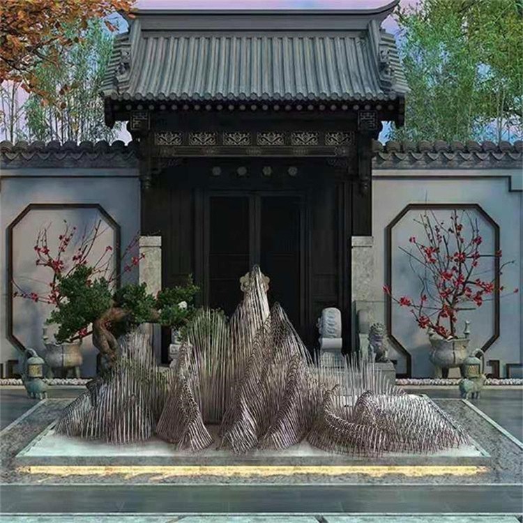 假山雕塑是水景設計中不可缺少的原素。依據(jù)石縫間的涓涓細流,水流與假山石構成了典雅的互動。不論是岸邊的垂柳或是池塘里的荷花,在不銹鋼假山雕塑背景下都更加生動,仿佛置身于一幅朝氣蓬勃的山水畫中。在臥室的室內裝修中,不銹鋼假山雕塑具有較高的美學價值。它不僅能合理隔離空間,給家庭生活帶來隱私,還能作為吸引客戶專注力的視覺焦點。屏上獨特的雕花圖案,或簡單典雅的過道,都能呈現(xiàn)主人的品味與情感,使整個空間展示出獨特的藝術氛圍。