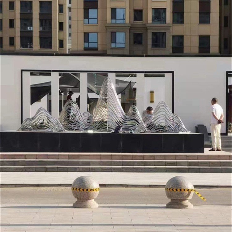 假山做為園藝設(shè)計(jì)的重要元素,是自然風(fēng)光的重現(xiàn),具備豐富的文化內(nèi)涵和美學(xué)價(jià)值。它以獨(dú)特的方式和結(jié)構(gòu),為院落、公園乃至室內(nèi)空間增添了無(wú)盡活力,讓人們?cè)诿β档纳钪懈惺艽笞匀坏臍庀?。因而,抽象假山雕塑的?gòu)造一般借鑒真正的高山構(gòu)造,通過(guò)不銹鋼板的排序和堆砌,似乎將大自然的杰作提取到一個(gè)小空間里,彰顯了大自然的魅力和人類的智慧,將寧?kù)o的山景與的工藝相結(jié)合,成為人們賞析和拍照的熱點(diǎn)。