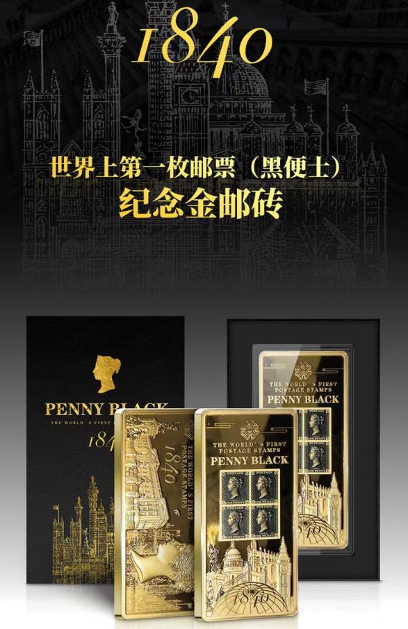 世界上枚郵票(黑便士)紀(jì)念金郵磚