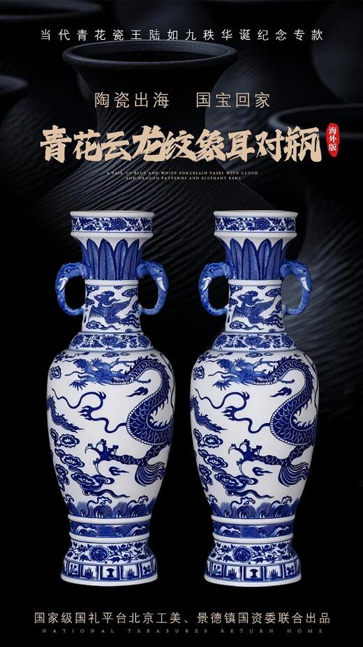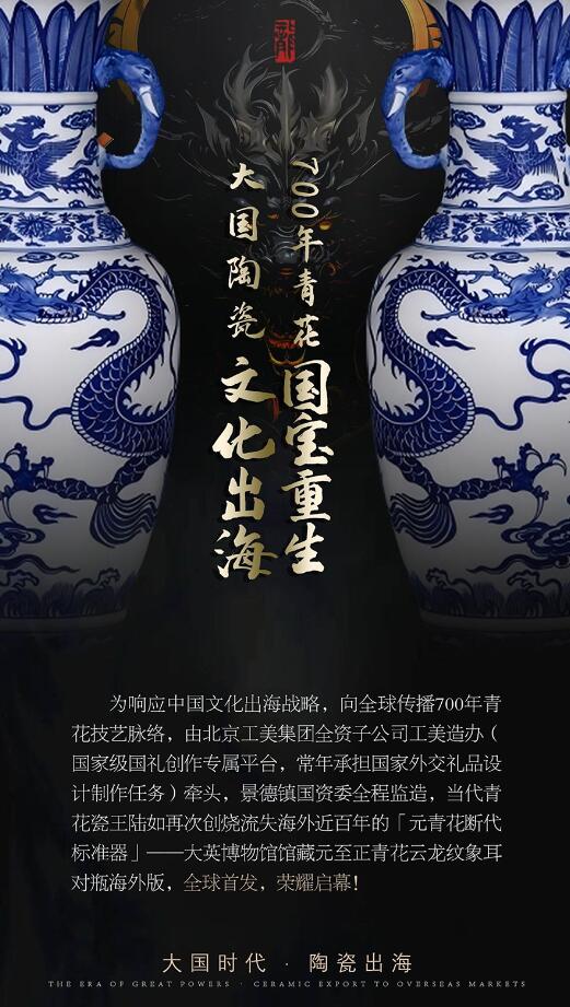 為響應(yīng)中國(guó)文化出海戰(zhàn)略,向全球傳播700年青花技藝脈絡(luò),由北京工美集團(tuán)全資子公司工美造辦(國(guó)禮創(chuàng)作專屬平臺(tái),常年承擔(dān)外交禮品設(shè)計(jì)制作任務(wù))牽頭,景德鎮(zhèn)國(guó)資委全程監(jiān)造,當(dāng)代青花瓷王陸如再次創(chuàng)燒流失海外近的「元青花斷代標(biāo)準(zhǔn)器」——大英博物館館藏元至正青花云龍紋象耳對(duì)瓶海外版,全球,榮耀啟幕!