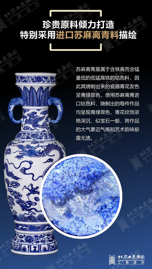象耳瓶寓意“太平有象”,云龍紋彰顯九五之尊。