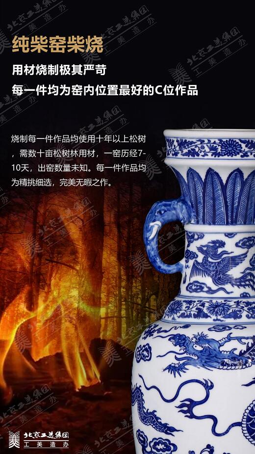 ? 藏品名稱:工美造辦柴燒青花云龍紋象耳瓶對(duì)瓶