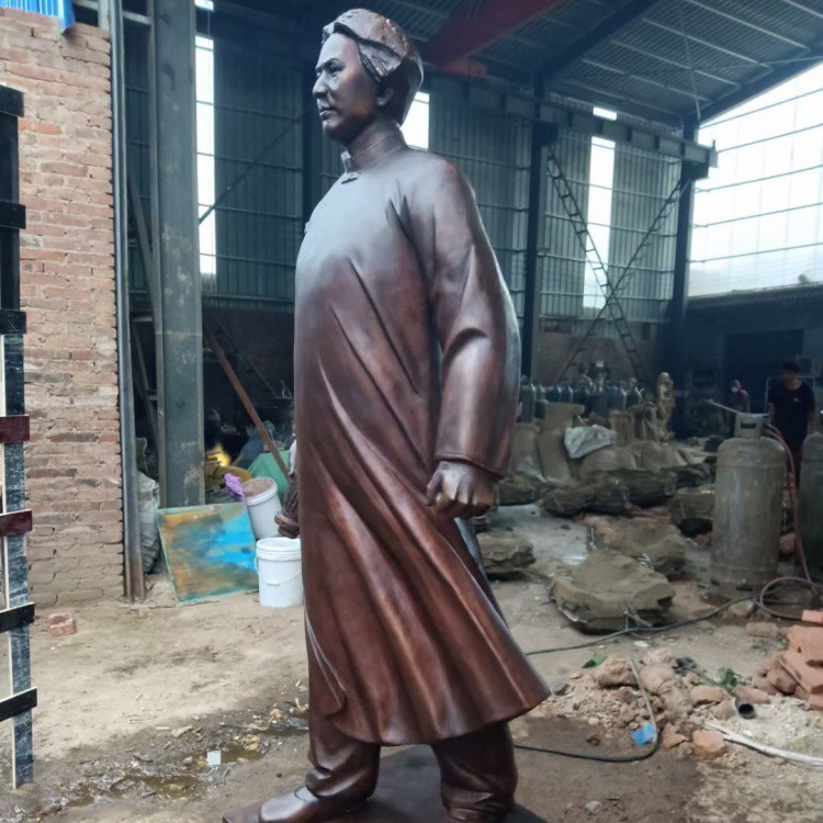 鑄銅人物塑像應(yīng)以銅、紅銅、紫銅為材料,依據(jù)泥塑稿件、磨具、鍛造、焊接等工藝,廣泛用于城市風(fēng)景、文化場館、歷史遺跡、私人收藏等領(lǐng)域,兼具文化價(jià)值和文化遺產(chǎn)。