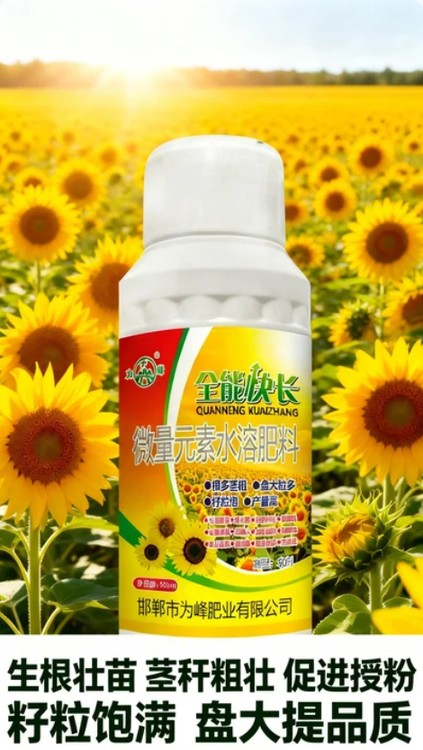 主打快速補(bǔ)肥與應(yīng)急防護(hù),本品采用速溶配方,溶解快、吸收快,能在短時(shí)間內(nèi)為葵花補(bǔ)充所需營(yíng)養(yǎng),緩解因施肥不足或環(huán)境脅迫導(dǎo)致的生長(zhǎng)不良。噴施后可快速提升葉片葉綠素含量,增強(qiáng)光合效率,使葉片迅速恢復(fù)濃綠,緩解黃葉、弱苗癥狀,促進(jìn)植株穩(wěn)健生長(zhǎng)。同時(shí)增強(qiáng)植株抗逆能力,抵御干旱、高溫、低溫等應(yīng)急環(huán)境,減少病蟲(chóng)害發(fā)生,預(yù)防植株早衰,為花盤(pán)發(fā)育與籽粒灌漿提供保障。此外,還能促進(jìn)花盤(pán)膨大、籽粒飽滿,提升千粒重,適合葵花各生長(zhǎng)階段應(yīng)急補(bǔ)肥使用,尤其適合災(zāi)后恢復(fù)與脫肥地塊。?