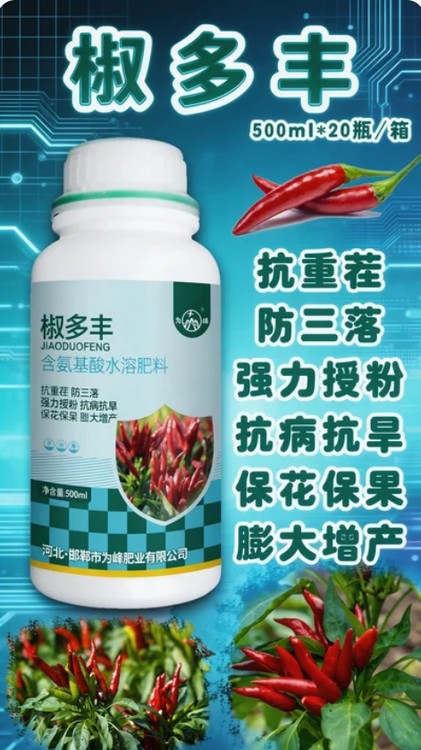 規(guī)格500毫升x20瓶適宜作物紅椒 朝天椒等等廠家為峰肥業(yè)品級優(yōu)等品