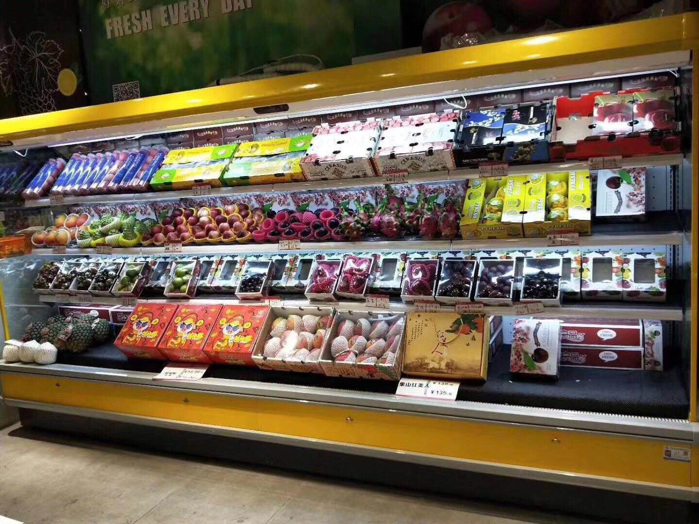 增層流優(yōu)化風幕 ,節(jié)能;的背吹制冷系統(tǒng),柜溫均勻;融霜自動控制,性能穩(wěn)定;采用自然空氣融霜,降低了電能消耗;人性化設計,增加了商品的展示性。產品美觀大方,對 使用場合起到一定的裝飾 作用;同時使得顧客在 購物取貨時 方便快捷;制冷系統(tǒng) 的執(zhí)行元件和電器的控制件均采用 國外品牌產品,以確保產品運行穩(wěn)定、可靠 。加大蒸 發(fā)器的設計,提高了換熱效率。使柜內降溫更快、溫度更低,同時更加節(jié)能;配有夜間節(jié)能簾,夜晚和其它非營業(yè)時間使用。進一步的節(jié)約電能