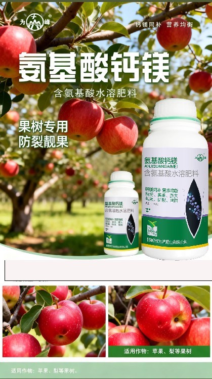 氨基酸鈣鎂能顯著減少果樹的缺素癥。針對(duì)蘋果苦痘病、梨黑心病、柑橘裂果等因鈣不足引發(fā)的生理病害,其螯合形態(tài)可被果樹快速吸收,直接輸送到果實(shí)部位,增強(qiáng)果皮韌性與厚度。同時(shí),鎂元素促進(jìn)光合作用,確保葉片濃綠不早衰,為果實(shí)積累充足糖分,讓果樹掛果多、果型正、商品率大幅提高。