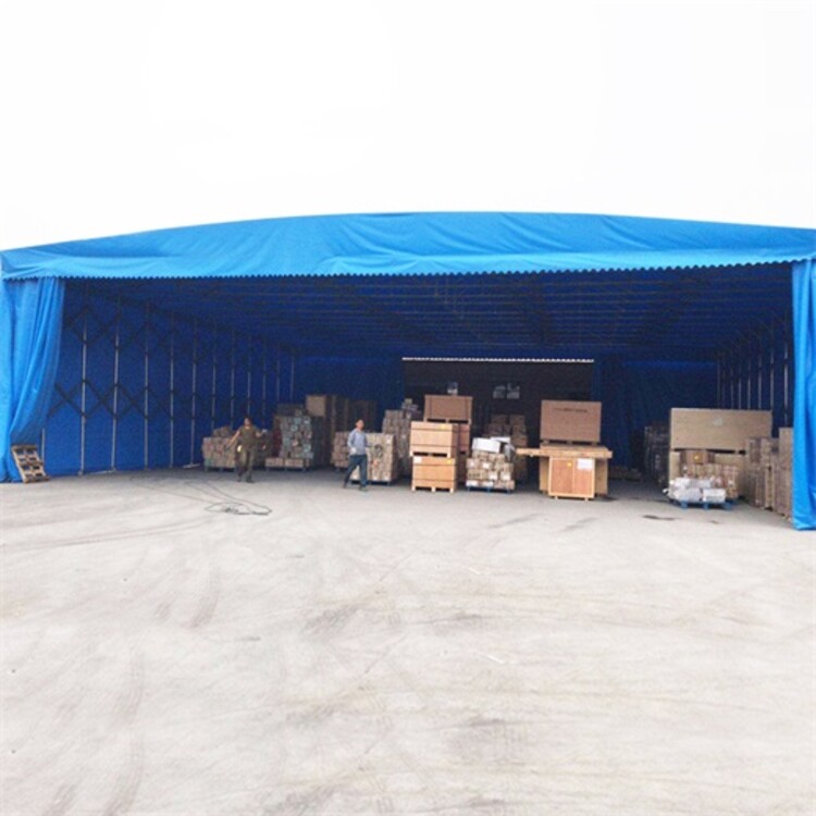 佛山高明電動(dòng)推拉雨蓬移動(dòng)帳篷校園遮陽(yáng)雨棚物品存放XYGM-06