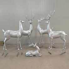 戶外景觀動(dòng)物小品玻璃鋼仿銅梅花鹿雕塑庭院花園小鹿擺件