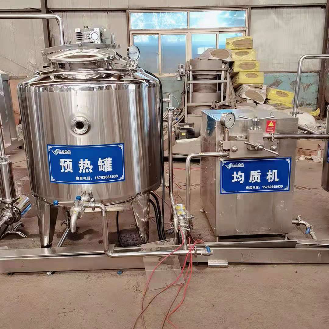 ?。?)預(yù)熱完成后,將原奶打入到均質(zhì)罐中進(jìn)行均質(zhì),同時(shí)加上相應(yīng)的輔料,使原奶均質(zhì)之后更加絲滑。