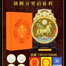 《精神》花絲幣由中國工藝美術(shù)大師丁明鴻設(shè)計(jì)完成,以戰(zhàn)國時(shí)期的“出廓龍紋玉璧”為原型進(jìn)行設(shè)計(jì)創(chuàng)作,以精美的花絲鑲嵌和琺瑯彩繪工藝制作完成,主體浮雕一匹金色駿馬,腳踏五彩祥云,周身飾以吉祥圖案,馬背之上鑲嵌丙午馬年生肖紀(jì)念幣,頂部兩條金龍相對,中間鑲