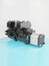 手動可調(diào)閉式變量軸向柱塞泵,變量控制簡單,調(diào)節(jié)輕便,具有中位制動,,壽命長,節(jié)省燃油,系統(tǒng)結(jié)構(gòu)簡單。柱塞泵具有注油泵,補油閥,過載閥,沖洗閥和降溫系統(tǒng),自動更換閉式系統(tǒng)內(nèi)液壓油,降低系統(tǒng)溫度,提高了柱塞泵和行走馬達(dá)的壽命。
