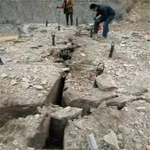 液壓巖石劈裂器的工作原理是:在要分裂的巖石斷面上鉆孔,然后將劈裂器安裝在孔中,啟動(dòng)液壓泵站,使高壓液體通過(guò)高壓輸油管道進(jìn)入液壓劈裂棒內(nèi)部,使劈裂頭展開(kāi),施力巖石斷面。劈裂頭通過(guò)施加連續(xù)的水平和豎直的力,讓巖石斷面發(fā)生撕裂并終分裂開(kāi)來(lái)。