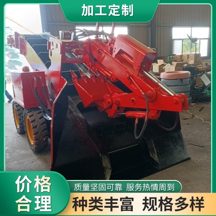 履帶挖掘式裝載機(扒渣機)是一種連續(xù)生產(chǎn)出渣設備,理論裝載量360m3/h,主要應用于大中型鐵路、公路隧道及引水洞、涵洞掘進施工中裝載作業(yè)。主要靠履帶推進和扒斗擺動鏟取巖石,通過自身刮板輸送機源源不斷的送到運渣設備上。本機主要特點:液壓系統(tǒng)主要液壓件選用進口,系統(tǒng)穩(wěn)定,可靠性高,超寬運輸槽,提高物料通過性。與裝載機等出渣設備相比,作業(yè)空間小,,可以有效減輕隧道污染,采用拆電雙動驅動系統(tǒng),其中機驅動主要用于長距離行走等作業(yè),出渣作業(yè)主要使用電動機驅動。