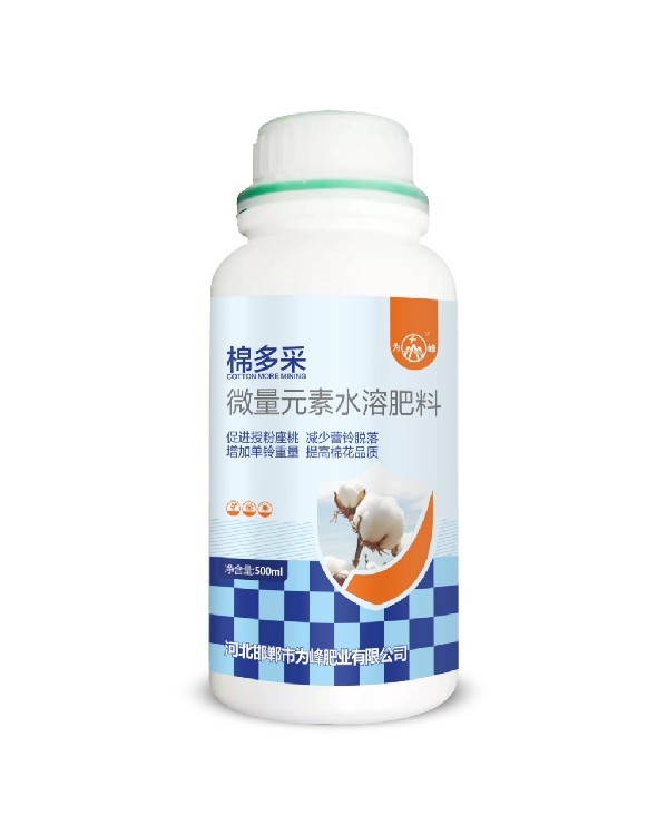 棉多采棉花葉面肥采用綠色安全配方,無殘留、,適合綠色棉花種植,噴施后能快速被棉花葉片吸收,不灼傷葉片,使用安全便捷。能補充棉花生長所需的大中微稀元素,平衡營養(yǎng)供給,促進根系發(fā)育,增強光合效率,延緩葉片衰老,防止早衰。同時能促進蕾鈴發(fā)育,減少蕾鈴脫落,提升單鈴重,改善棉纖維品質(zhì),讓棉絮潔白、細膩、拉力強,同時增強棉株抗逆能力,抵御病蟲害與極端天氣,實現(xiàn)優(yōu)質(zhì)高產(chǎn)。