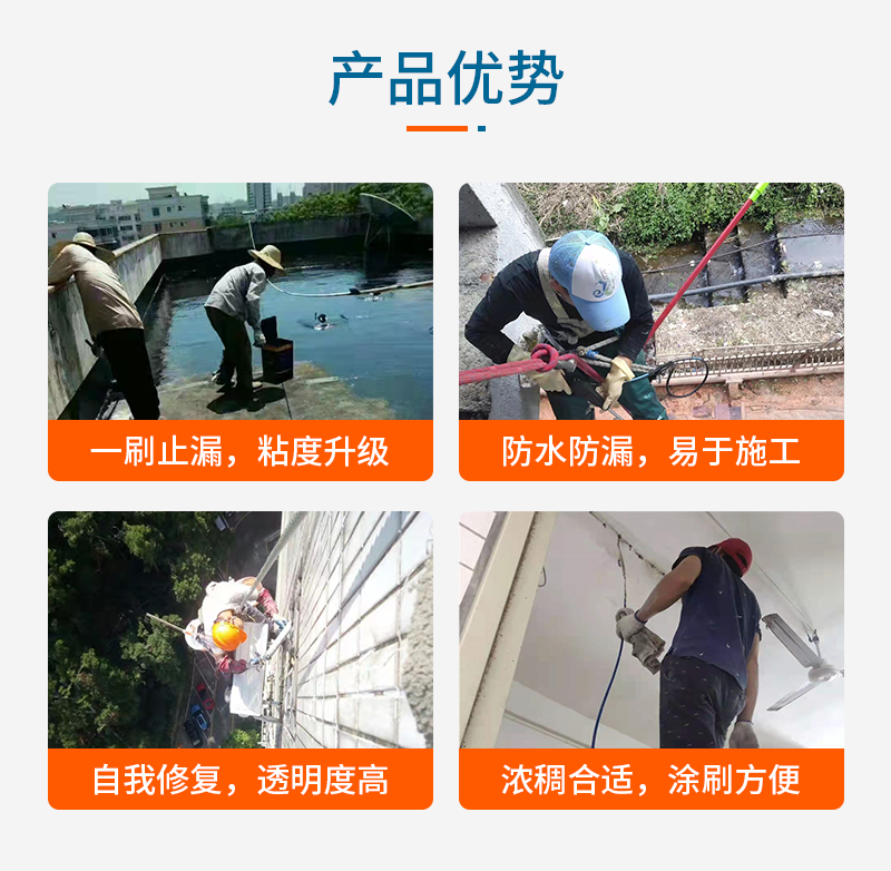 中天防水外墻補漏工程裝修透明防水膠免砸磚瓷磚地板涂料材料桶裝