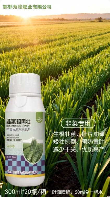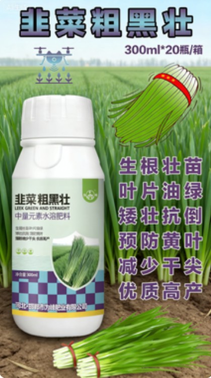 本品為韭菜粗黑壯葉面肥,富含氮磷鉀及螯合態(tài)鈣、鎂、鋅等中微量元素,采用滲透技術(shù),噴施后可快速被葉片吸收,直達植株體內(nèi)。能顯著促進葉綠素合成,讓韭菜葉片濃黑發(fā)亮、肥厚緊實,有效改善葉片發(fā)黃、變薄、干尖等問題。同時激活根系活力,促進新根萌發(fā),增強韭菜抗寒、抗旱、抗病能力,抑制植株徒長,使莖稈粗壯、抗倒伏。長期使用可提升韭菜產(chǎn)量,改善口感,減少農(nóng)藥殘留,延長采收周期,適配露地、大棚等各類韭菜種植場景,助力農(nóng)戶實現(xiàn)優(yōu)質(zhì)高產(chǎn)。?