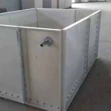 SMC模壓單板是采用食品級樹脂生產(chǎn)的SMC片材,經(jīng)高溫、高壓、機(jī)械壓制而成。在制造工藝上,采取機(jī)壓成型的制作方法。增加了抗震、抗沖擊的強(qiáng)度、克服了手糊制品強(qiáng)度不均勻的缺陷,提高了耐壓強(qiáng)度和使用壽命;在外型設(shè)計(jì)上,板塊中部呈凹陷弧度,提高了水箱的承壓能力,同時板塊四周沒有45度和90度的凸緣,組裝時不用邊角連接件,更具有柔韌性和靈活性,水箱板塊規(guī)格有:1000×1000mm;1000×500mm;500×500mm。厚度有5mm、8mm、10mm、12mm、14mm、16mm、18mm、20mm、22mm。其中5mm厚度板做水箱蓋板。因而可任意拼裝成所需容量的水箱。