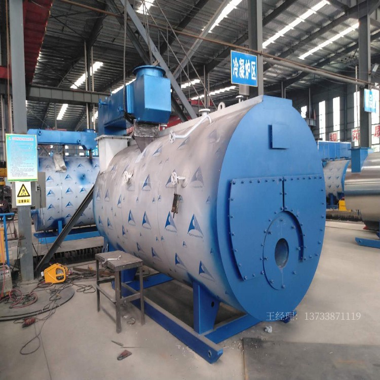 WNS型燃油氣蒸汽鍋爐采用臥式標(biāo)準(zhǔn)三回程結(jié)構(gòu)形式,燃燒方式采用微正壓燃燒。鍋爐本體由鍋筒、爐膽(波形爐膽)和兩回程煙管組成。鍋筒內(nèi)裝有汽水分離裝置和給水裝置,下部裝有定期排污裝置。燃料在燃燒器內(nèi)與空氣混合后被電子點(diǎn)火棒點(diǎn)燃,噴入爐膽中燃燒,高溫?zé)煔庥蔂t膽進(jìn)入兩級(jí)對(duì)流管束,由后煙箱通過煙囪排向大氣。