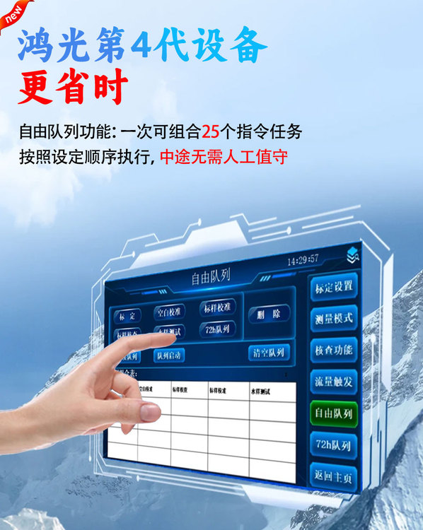 南京鴻光水質(zhì)在線監(jiān)測(cè)儀自由隊(duì)列功能支持“整點(diǎn)隊(duì)列”與“連續(xù)隊(duì)列”兩種模式,一次可組合25個(gè)功能(含標(biāo)定、空白校準(zhǔn)、標(biāo)樣核查、水樣測(cè)試等)。連續(xù)隊(duì)列按順序連續(xù)執(zhí)行任務(wù),整點(diǎn)隊(duì)列按整點(diǎn)依次啟動(dòng)操作,無(wú)需人工反復(fù)設(shè)置,儀器自動(dòng)完成系列測(cè)試,適配多樣化監(jiān)測(cè)需求。