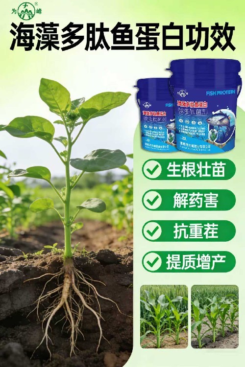 海藻多肽魚蛋白是一種的海洋源生物刺激素,通過信號傳導(dǎo)機(jī)制直接激活作物自身的代謝潛能。它富含的寡糖和活性多肽能夠作為信號分子,啟動作物根系對營養(yǎng)元素的響應(yīng)機(jī)制,促使根系主動吸收并運轉(zhuǎn)養(yǎng)分。這種內(nèi)源性的刺激作用了傳統(tǒng)施肥的范疇,能夠協(xié)調(diào)作物營養(yǎng)生長與生殖生長的平衡,避免徒長或早衰。在連續(xù)陰雨或低溫寡照等逆境條件下,它能維持光合作用的酶活性,確保作物生理活動正常進(jìn)行,從而保障產(chǎn)量與品質(zhì)的穩(wěn)定形成。