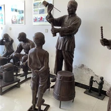 制作人物銅雕是一個(gè)復(fù)雜而精細(xì)的過程。是設(shè)計(jì)階段,藝術(shù)家需要深入研究人物的性格、背景和相關(guān)故事,制定出詳細(xì)的創(chuàng)作方案。然后是塑形的環(huán)節(jié),可能會(huì)用到黏土等材料先制作出小稿,不斷調(diào)整人物的比例、姿態(tài)和表情,以達(dá)到。一旦小稿確定,就會(huì)進(jìn)行放樣,將小稿的比例放大。接下來是鑄造階段,這是人物銅雕制作的關(guān)鍵步驟。常見的鑄造方法有失蠟鑄造法,這個(gè)過程需要的工藝精度。將蠟?zāi)S锰厥獠牧习?jīng)過燒制使蠟熔化流出(失蠟),然后將熔化的銅水注入型腔,等銅水凝固后,經(jīng)過精心的打磨、修整,去除澆冒口等多余部分,一件人物銅雕才初露雛形。后還要進(jìn)行表面的處理,如著色、拋光等,使銅雕更具藝術(shù)感染力。