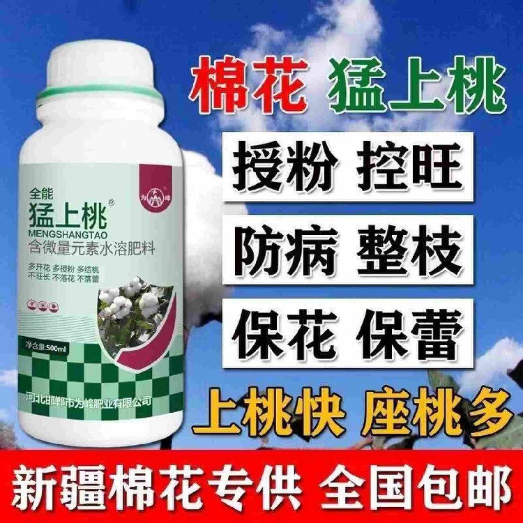 猛上桃聚焦新疆棉田核心需求,專為新疆機采棉、常規(guī)棉定制,富含氨基酸、褐藻寡糖及S-誘抗素,針對性解決新疆棉田因光照強、晝夜溫差大導(dǎo)致的蕾鈴脫落、桃形偏小、早衰等問題。能促進棉株根系下扎,增強鹽堿地養(yǎng)分吸收能力,調(diào)節(jié)內(nèi)源激素平衡,抑制脫落酸形成,強化果柄韌性,有效減少落花、落蕾、落鈴。同時提升光合作用效率,適應(yīng)新疆長日照特點,延長葉片功能期,為棉桃發(fā)育提供充足營養(yǎng),促使棉桃飽滿均勻,適配機械化采收,提升新疆棉花商品等級和產(chǎn)量。?