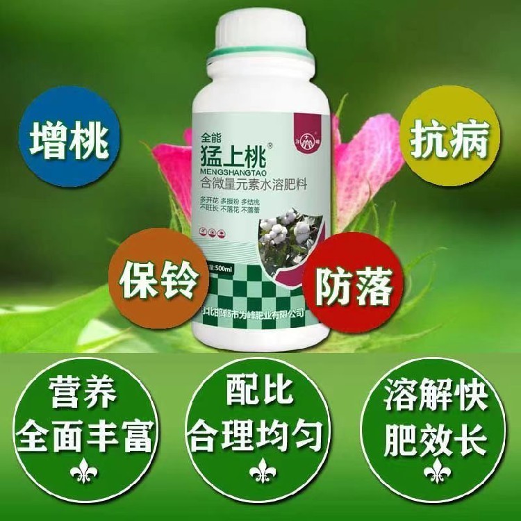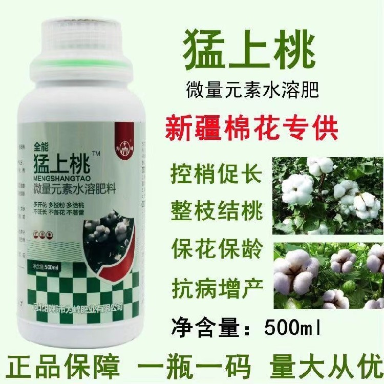 猛上桃本品采用絡(luò)合技術(shù),將氨基酸、大中微量元素科學(xué)配比,專為棉花猛上桃研發(fā),能快速補充棉株所需營養(yǎng),消除生理缺素癥狀,增強酶的活性,促進棉株健壯生長??烧{(diào)節(jié)棉株營養(yǎng)平衡,促進營養(yǎng)生長向生殖生長轉(zhuǎn)化,加快開花授粉速度,提高上桃率,減少落花落蕾。同時預(yù)防枯、黃萎病和紅蜘蛛、盲椿象等病蟲害,增強抗逆能力,促進棉桃膨大,增加鈴重,使棉桃成熟均勻,提前上市,提升棉農(nóng)收益。?