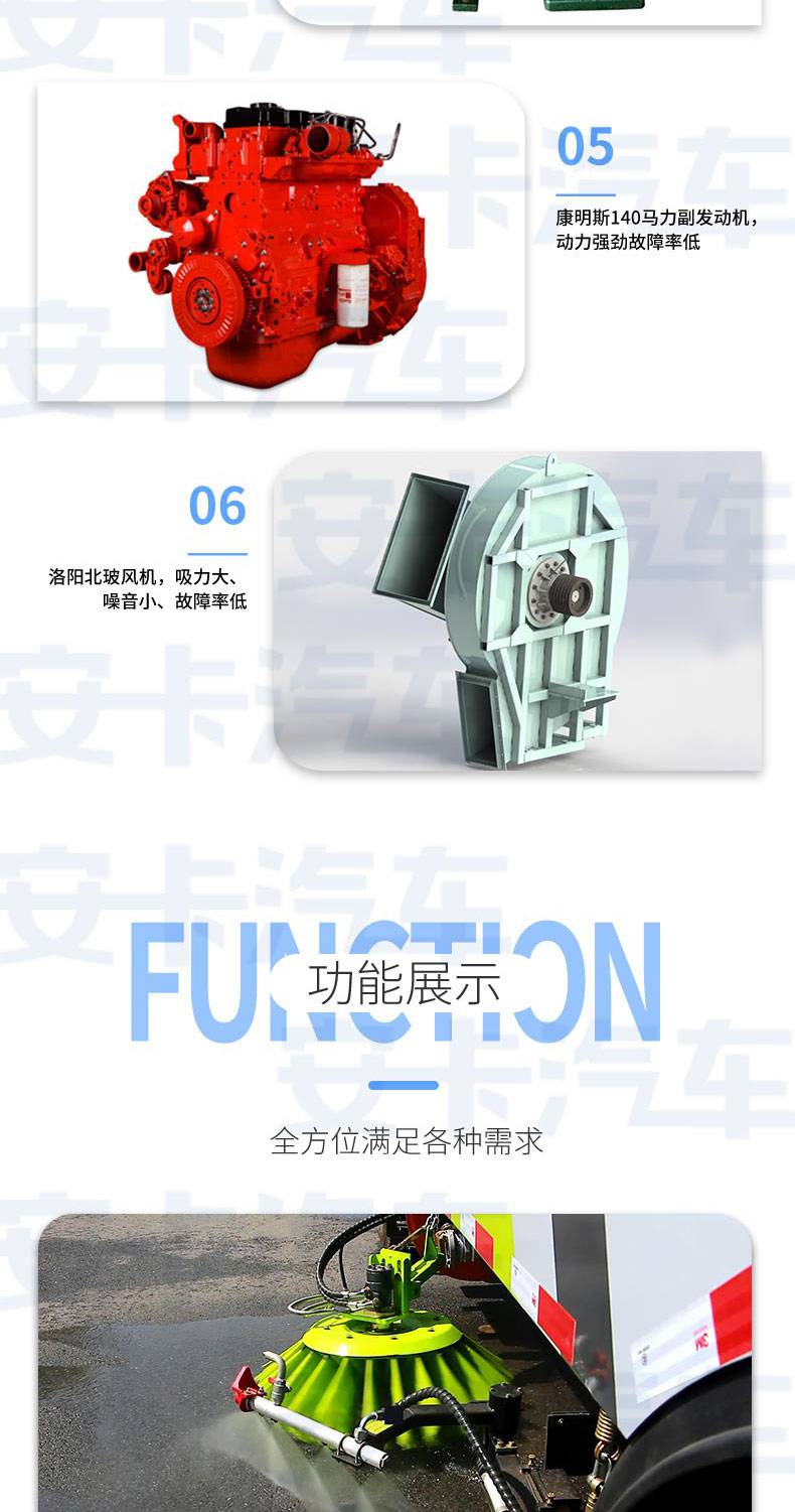 洗掃車適用于城市道路、高速公路、廣場、機(jī)場、碼頭、隧道、橋梁、隔離墻避、路緣和路緣石立面的機(jī)械化清洗、清掃、噴霧降塵等清潔作業(yè)。