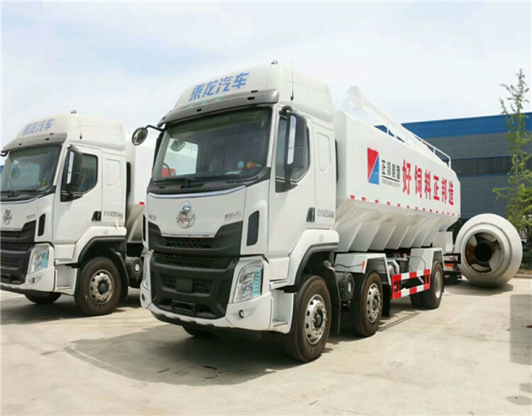 國內(nèi)成熟的絞龍工藝;卸料蛟龍回轉(zhuǎn)系統(tǒng)采用蝸輪蝸桿回轉(zhuǎn),一改以前采用鏈條回轉(zhuǎn)方式,經(jīng)多年使用經(jīng)驗,采用鏈條回轉(zhuǎn)系統(tǒng)長時間運轉(zhuǎn)和車輛顛簸會出現(xiàn)松動現(xiàn)象,車輛在行駛過程中送料系統(tǒng)會左右擺動,程力散裝飼料車加以改進,采用齒輪旋轉(zhuǎn),設(shè)備更為準(zhǔn)確,間隙更小,裝置更為緊密,很好的解決了松動現(xiàn)象。