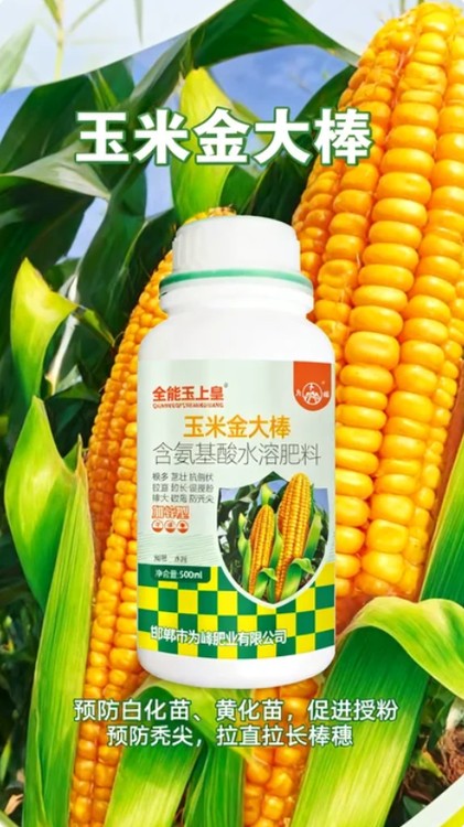 廠家為峰肥業(yè)包裝規(guī)格500毫升x20瓶針對(duì)作物黃白玉米甜玉米,糯玉米,水果玉米