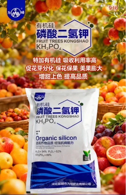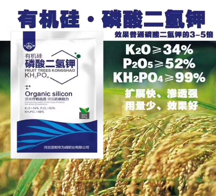 有機(jī)硅磷酸二氫鉀將傳統(tǒng)磷酸二氫鉀與有機(jī)硅增效劑科學(xué)復(fù)配,功效全面。有機(jī)硅的低表面張力使肥液在葉片上的覆蓋面積擴(kuò)大數(shù)倍,并能快速穿透蠟質(zhì)層,磷鉀吸收效率顯著提升,肥效快且持久。本品能補(bǔ)充磷、鉀元素,促進(jìn)作物光合作用與碳水化合物代謝,使植株健壯、籽粒飽滿(mǎn)、果實(shí)勻稱(chēng);在生育關(guān)鍵期使用,可增加穗粒數(shù)、千粒重,提高坐果率和單果重。同時(shí),它能誘導(dǎo)作物產(chǎn)生系統(tǒng)抗性,增強(qiáng)對(duì)干旱、低溫、鹽堿及病害的抵御能力,硅元素還能使表皮細(xì)胞硅質(zhì)化,減輕蟲(chóng)害侵?jǐn)_。產(chǎn)品具有親土性,可改善土壤板結(jié),防止肥料流失。無(wú)激素、,適合及綠色農(nóng)產(chǎn)品生產(chǎn),是現(xiàn)代農(nóng)業(yè)提質(zhì)增效的可靠幫手。