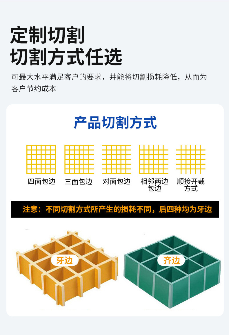 3、選擇了合適厚度的玻璃鋼格柵之后,要計算出使用時格柵板的尺寸。如在洗車場中。一個洗車位的尺寸大多是1.220m*2.440m,而玻璃鋼格柵的尺寸是1.220*3.660的,這就需要經(jīng)過切割之后才能投入使用。