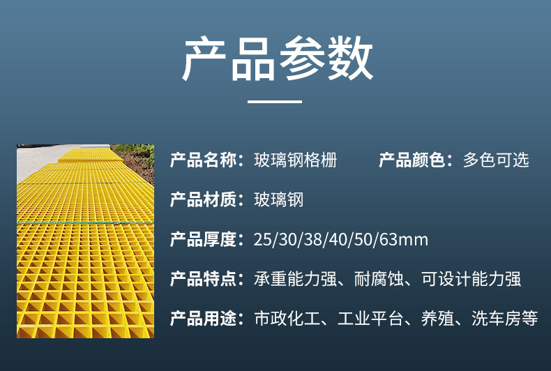 玻璃鋼格柵厚度:25mm、30mm、38mm、50mm等。