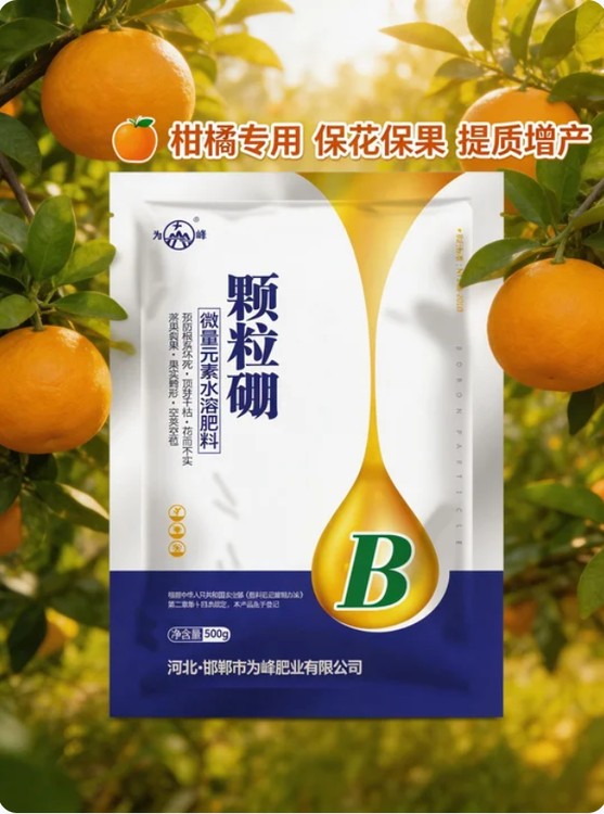 顆粒硼是提升作物 “產(chǎn)量與品質(zhì)” 的關(guān)鍵營養(yǎng)劑,對(duì)開花結(jié)果類作物作用。它促進(jìn)花芽健壯,提高花粉質(zhì)量,讓授粉更充分、落果更少、產(chǎn)量更高。促進(jìn)果實(shí)均勻發(fā)育,果皮光滑、口感香甜、耐儲(chǔ)運(yùn)。增強(qiáng)作物抗寒、抗旱、抗病能力,減少逆境損失。同時(shí)促進(jìn)塊莖膨大、籽粒飽滿、出油率與蛋白質(zhì)含量提升。適用于果蔬、油料、糧食、中藥材等多種作物,施用簡便,長效穩(wěn)定,顯著提升經(jīng)濟(jì)效益。