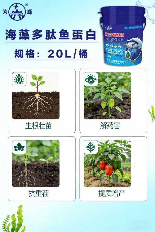 補(bǔ)養(yǎng),減少肥料浪費(fèi)。采用低溫酶解、超膜過(guò)濾等工藝提取,完整保留海藻與魚(yú)蛋白的活性營(yíng)養(yǎng),小分子肽與氨基酸可直接被作物吸收利用,無(wú)需二次轉(zhuǎn)化,吸收效率遠(yuǎn)超傳統(tǒng)化肥、有機(jī)肥。能顯著提升肥料利用率,減少化肥用量,降低種植成本,同時(shí)避免化肥過(guò)量導(dǎo)致的土壤污染,實(shí)現(xiàn)綠色、種植。?