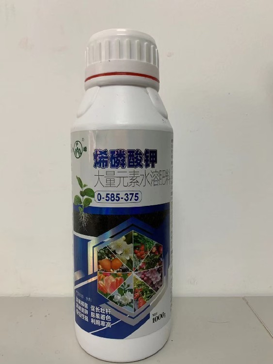 烯磷酸鉀的核心功效是提升作物光合作用效率,促進養(yǎng)分積累。它能促進作物葉片葉綠素合成,讓葉片肥厚油亮,增強光合作用強度,提高光合產(chǎn)物的轉(zhuǎn)化和運輸效率,為作物生長提供充足能量。同時,它能延長功能葉壽命,減少葉片早衰,讓作物在整個生育期都能保持旺盛的光合作用,積累更多營養(yǎng)物質(zhì),為高產(chǎn)優(yōu)質(zhì)奠定基礎(chǔ),尤其適用于光照不足的大棚環(huán)境和生育后期的作物。