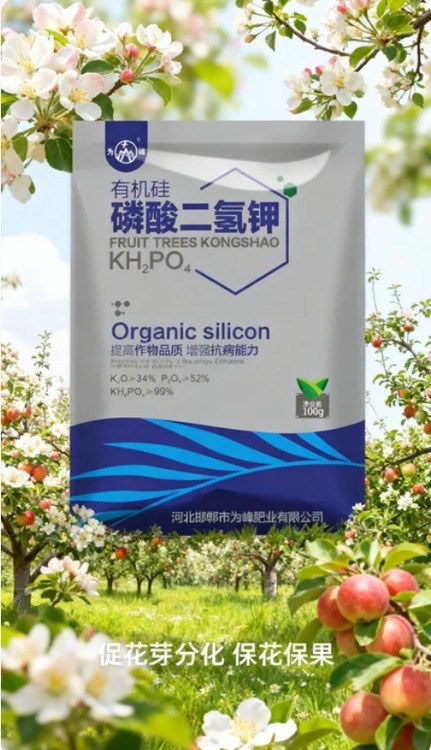 有機(jī)硅磷酸二氫鉀是一款、多功能的葉面肥。通過添加特種有機(jī)硅助劑,其展著性和滲透性大幅提升,肥液能快速濕潤葉面并進(jìn)入葉片,磷鉀吸收利用率高達(dá)90%以上,比普通產(chǎn)品提高3至5倍。它可顯著增強(qiáng)光合作用,使葉片濃綠肥厚、莖稈粗壯、根系發(fā)達(dá),同時(shí)促進(jìn)花芽分化、?;ū9⒓铀倥蚬?,提升果實(shí)甜度和商品率。在抗逆方面,能增強(qiáng)作物抗寒、抗旱、抗干熱風(fēng)、抗倒伏及抗病蟲害能力。此外,有機(jī)硅還能改良土壤團(tuán)粒結(jié)構(gòu),減少養(yǎng)分流失,兼具保水保肥功能,且無氯無殘留,對(duì)環(huán)境友好。適用于小麥、水稻、玉米、果樹、蔬菜、花生等各類作物,是實(shí)現(xiàn)增產(chǎn)提質(zhì)、綠色種植的理想選擇。
