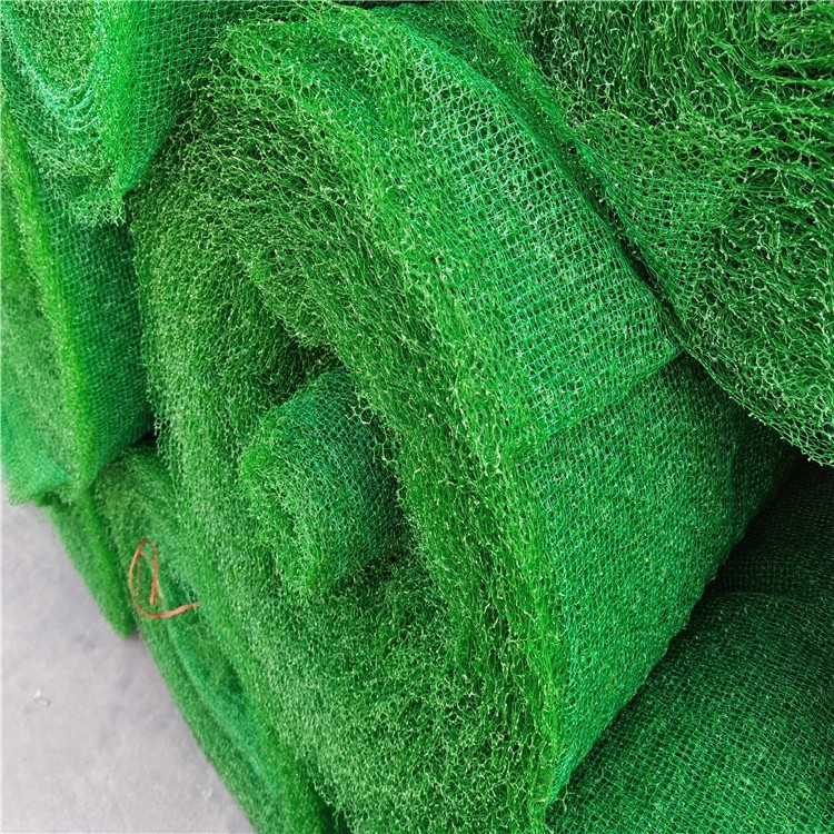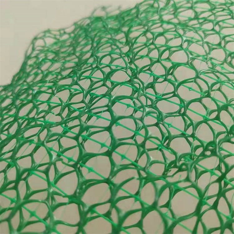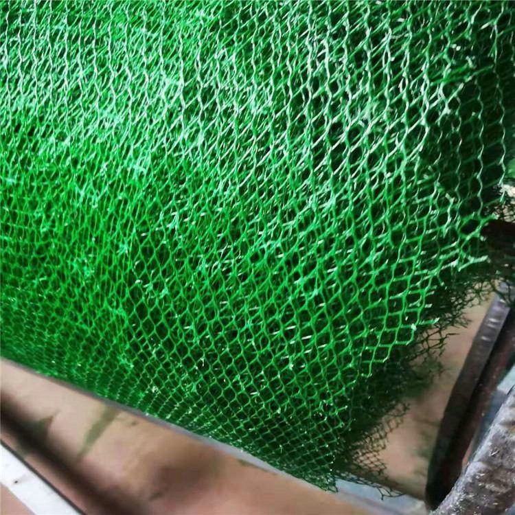 三維土工網(wǎng)墊是以熱塑性樹脂為原料,經(jīng)擠出成網(wǎng)、拉伸、點(diǎn)焊復(fù)合等工序而成的表面呈凹凸泡狀的多層塑料三維結(jié)構(gòu)網(wǎng)墊,它的底層為一高膜量基礎(chǔ)層,能防止變形和水土流失,表層為起泡層,填入土壤,種上草籽,是非常理想的土壤植被防護(hù)材料。