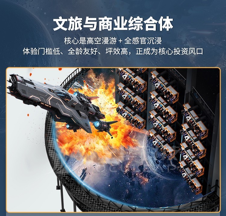 環(huán)幕裸眼 3D 搭配動(dòng)感軌道車,180° 巨幕環(huán)繞包裹,畫面觸手可及。軌道平臺(tái)隨劇情實(shí)時(shí)升降、搖擺、顛簸,還原穿梭、追逐、探險(xiǎn)的臨場(chǎng)感,配合吹風(fēng)、噴水、震動(dòng),讓你置身侏羅紀(jì)、深海秘境或星際戰(zhàn)場(chǎng)。無需佩戴設(shè)備,全感官沉浸,驚險(xiǎn)不危險(xiǎn),適合全年齡段體驗(yàn),人氣與復(fù)購(gòu)率雙高。