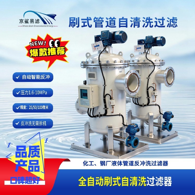 設備兼具壓差、定時輔助、手動應急三重控制模式,自動化程度高、過濾效率穩(wěn)定、運維成本極低,徹底解決傳統(tǒng)過濾器堵塞、頻繁停機、人工維護繁瑣的痛點,適配連續(xù)化生產(chǎn)與供水場景。